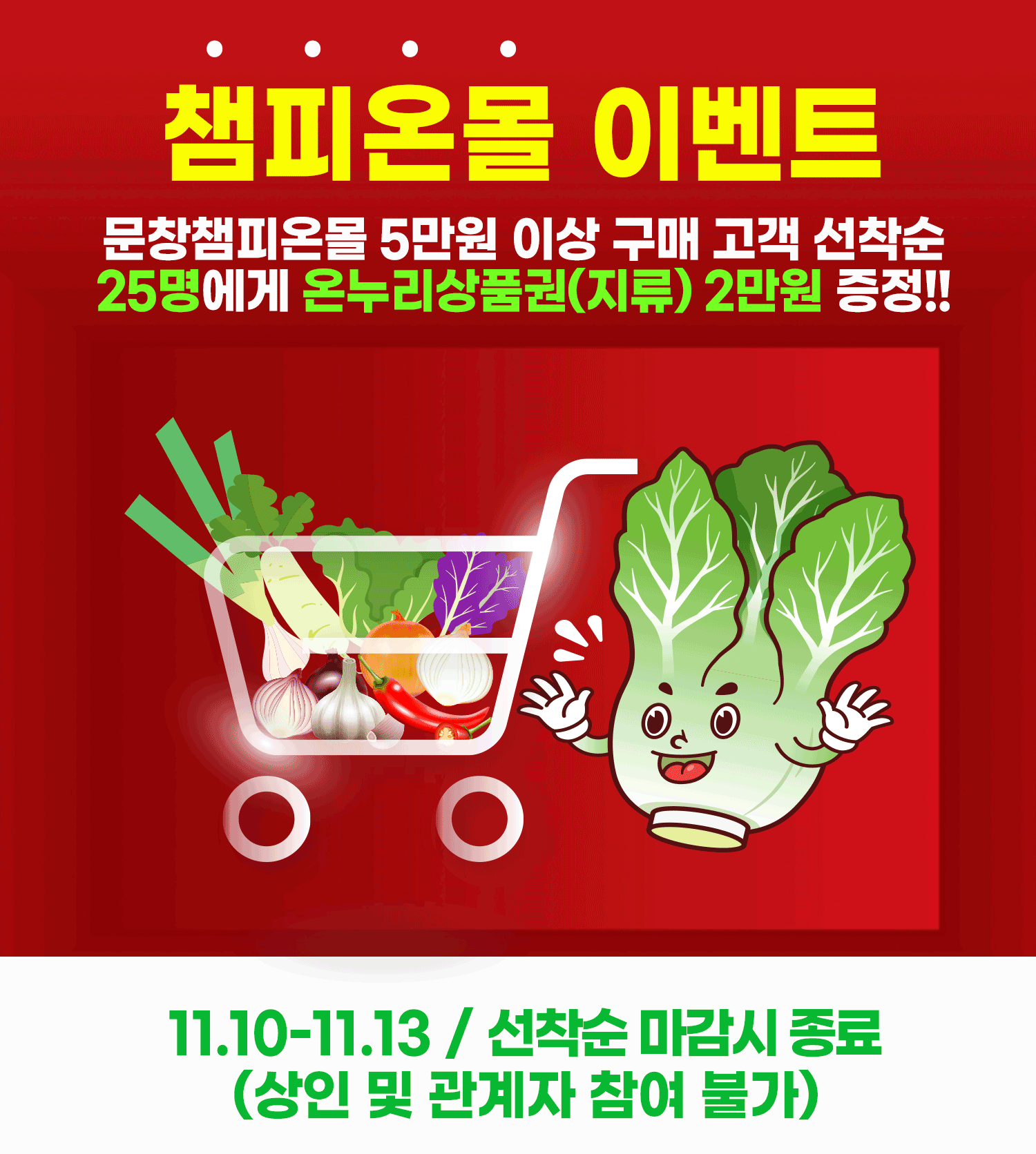 문창챔피온몰 5만원 이상 구매 고객 선착순25명에게